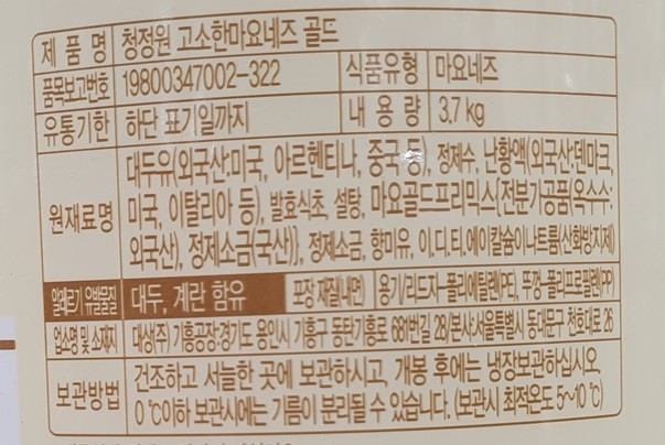 상품명 : 청정원 고소한 마요네즈 골드 3.7Kg