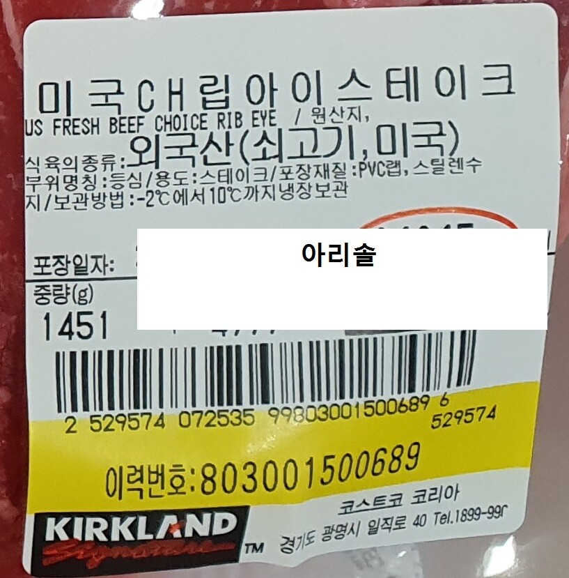 상품명 : 코스트코 스테이크용 등심 미국산냉장육(매장내 g당 단가제)